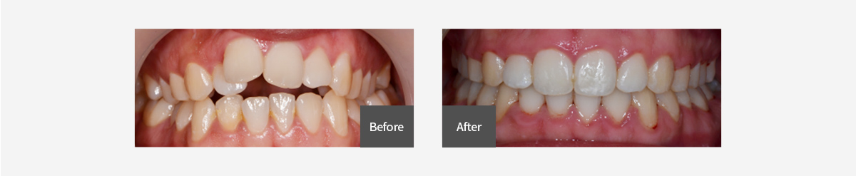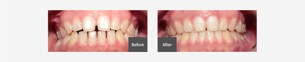 벌어진 치아를 깎아 보철을 하거나 레진으로 떼워 넣기도 하나 둘다 치아에 손상을 입힙니다