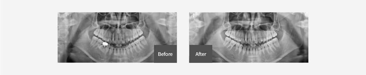 발치를 통해 치아와 주위 잇몸뼈를 뒤로 이동시켜 세련된 인상으로 변화합니다 또한 발치를 통한 아래턱 주위 근육의 변화로 갸름해 보이는 턱을 갖게 됩니다