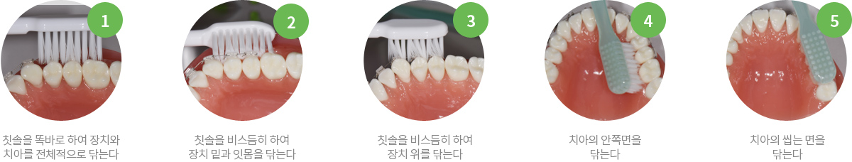 칫솔 양측위 뾰족한 부분을 이용하여 치아와 장치 사이의 좁은 면을 효과적으로 닦을 수 있습니다